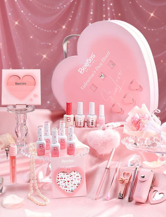 Beetles Gel Polish so in Love Collection - Glow in Love Valentine Gel Nail Polish Set, Pink Gel Nail Art Set with Base Top Coat Mini Rose Bouquet, Salon DIY at Home Valentine'S Day Gift for Women Wife Girlfriend