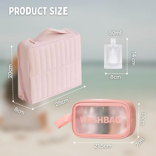 Bagvault Women'S Standing Travel Makeup Bag Bundle with Waterproof Toiletry Bag & 3 Dispensing Bags Portable Cosmetic Storage Set for Travelers #Tiktokshopblackfriday #Travelmusthave #Christmas Gift Ideal